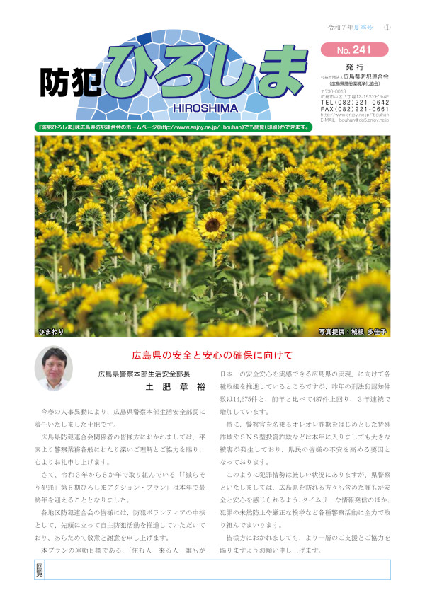 バックナンバー 2025年10月6日 by 広島県防犯連合会 No241(令和7年夏季号)PDFダウンロード(1.29MB) No240 (令和7年春季号)PDFダウンロード(1.32MB) No239 (令和7年新春号)PDFダウンロード(1.29MB) No238 (令和6年秋季号)PDFダウンロード(1.38MB) No237 (令和6年夏季号)PDFダウンロード(2.46MB) No236 (令和6年春季号)PDFダウンロード(3.03MB) No235 (令和6年新春号)PDFダウンロード(3.05MB) 前のページにもどる