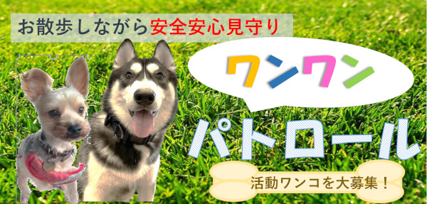 | ワンワンパトロール 募集中! ![]() (R7.8.26~) | ワンちゃんと一緒に「ながら見守り」を楽しく 始めてみませんか? ![]() 毎日のお散歩をしながらお住まいのまちで 不審な人がいないか、変わった様子がないか など、防犯の視点を持ち見守ってもらう活動 を目的にしています。 |